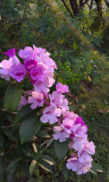 蒜香藤有一个很有趣的地方,就是它的花色会随着时间的推移而改变。初开时为粉紫色,几天后慢慢转为粉红色,最后变成白色然后掉落。整个植株在花期可见多种色彩并存,格外瞩目。