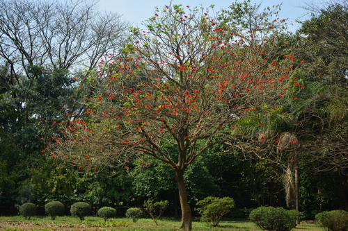 近日广州气候温暖,华南植物园一片青葱吸引了大批鸟儿在这栖息,您看,这树上停满了火红火红的鸟儿们?来到树下定睛一看,才发现这些“鸟儿”其实是花开正艳的——刺桐。