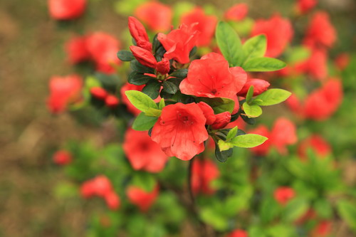 一入正门,就能看到一大片映山红开得格外灿烂,火红的颜色,在满园绿色的衬托下,显得格外鲜艳夺目,过往的游客无不驻足观赏,拍照留影。