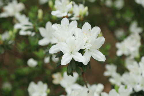 杜鹃盛花时节,花朵密密匝匝,竟相辉映,蔚为壮观,有“木本花卉之王”的美誉,因花开时映得满山皆红而得名。“映山红”是“杜鹃啼血,子归哀鸣”典故的出处。【唐】李白诗云:“蜀国曾闻子规鸟,宣城还见杜鹃花;一叫一回肠一断,三春三月忆三巴”,咏颂杜鹃鸟与花终身不弃的爱恋。【唐】白居易赞杜鹃花:“花中此物似西施,芙蓉芍药皆嫫母;回看桃李都无色,映得芙蓉不是花”,故得“花中西施”之美誉。【宋】杨万里诗云:“何须名苑看春风,一路山花不负侬。日日锦江呈锦样,清溪倒照映山红。”