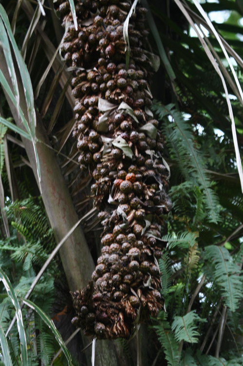 酒椰的生活史很特别,类似竹子,为一次性开花结果的植物,一生只开一次花,结一次果,然后就全株枯死(开花结果这一过程通常需2-3年),生命相对短暂,在原产地一般20年就终止了生命的延续。华南植物园的这几株酒椰至今已经33年了,近年在广州第一次开花结果,结完果后(果实成熟需1年半时间)它们也将走完自己的一生。如今,在华南植物园棕榈园还能看到正在结果的酒椰,大家不要错过了。