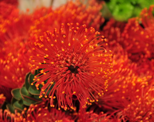 在以往的帝王花展中,有一种植物总是以艳光四射的魅力吸引了无数的长枪短炮,其场面不亚于南非足球场上的火热气氛,这就是针垫花。