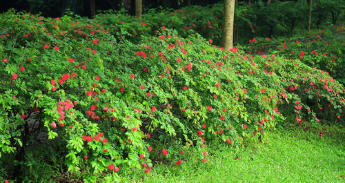 苏里南朱缨花原产热带美洲,现世界热带、亚热带地区广为栽培,是优良的观花树种,在庭园中群植或列植均可。