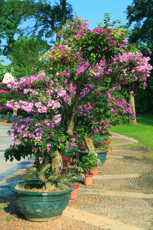 华南植物园自2009年开始每年金秋季节举办三角梅(簕杜鹃)专题花展,展出我园栽培20多年的大型三角梅盆景和多年来引种收集的不同品种盆栽三角梅,今年展出品种达110多个。
