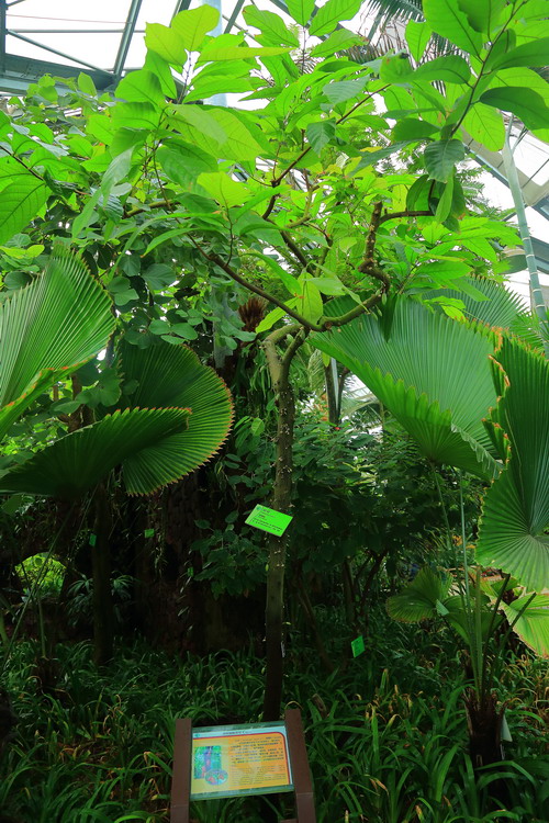 16世纪初期,一支西班牙探险队探访墨西哥高原腹地,他们一路翻山越岭,极为艰辛,队员们个个累得腰酸背疼、筋疲力尽。正在这时,从山上下来一队印第安人,看见探险队员们一个个无精打采,友善的印第安人立刻从行囊中取出几粒黑乎乎的豆子,碾碎并加水煮沸,顿时一股浓郁的芳香便在空气中弥漫开来。探险队员们喝了这水以后,没一会儿工夫,就好像被施了魔法,体力迅速得到恢复。看到他们惊讶万分的表情,印度安人得意地说:“这可是神仙饮料啊!”。原来这种黑乎乎的豆子就是可可树的果仁——可可豆,而人见人爱的巧克力就来自可可豆,因此可可树被称为巧克力的“妈妈”。今天就让我们来认识一下华南植物园热带雨林室内正在开花结果的可可吧。