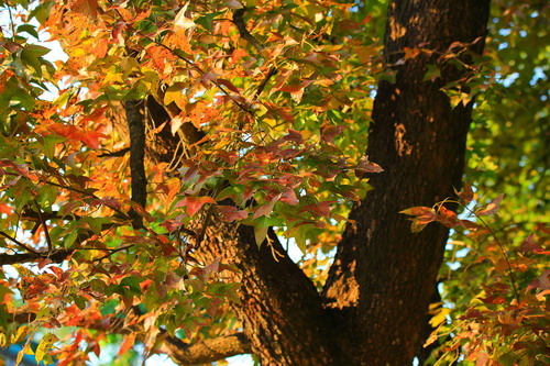 北方的红叶已落下帷幕,广州可是最近才刚刚入秋,每年这个时候,枫香树的叶子就最先感知到秋的来临,树叶由绿变黄变红,在阳光的照耀下发出五彩斑斓的光芒,呈现出一派秋色胜春光的美景。