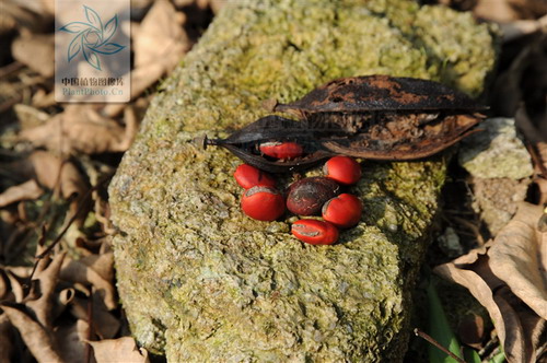 我们在旅游景点经常还能买到另一种红色带黑点的“红豆”手链,那是相思子(Abrus precatorius)(又名鸡母珠)的种子,蝶形花科相思子属植物,有剧毒,可千万不能吃哦。
