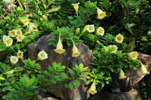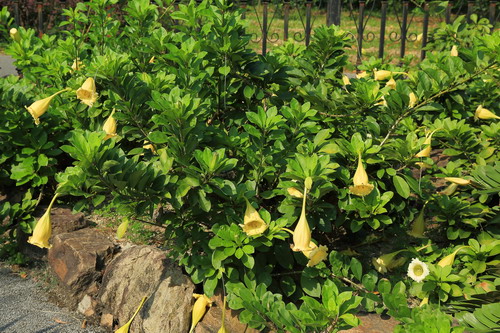 今天的广州清晨,有了点初秋的味道,凉风习习甚是舒爽。到了午后,气温又上升至30度以上,进入炎夏。那么,这秋天的脚步到底离广州还有多远?无论凉爽还是炎热,花儿们始终淡定一如寻常,用怒放来表现自己。如今漫步在沙漠植物室室外小路,有一种高调的大喇叭花正开得欢快热烈,让人无法忽视它的存在,它就是金杯花。