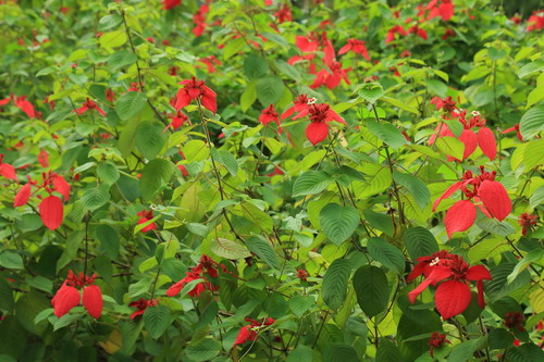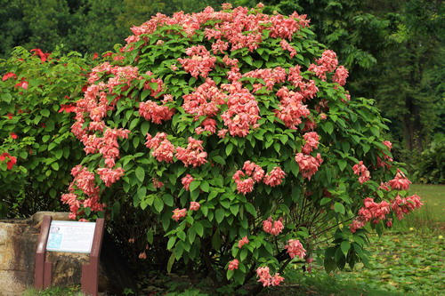 红纸扇(红玉叶金花)观赏地点:生物园入口(紫薇小卖部旁)、温室群景区、棕榈园等地