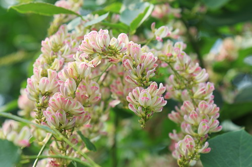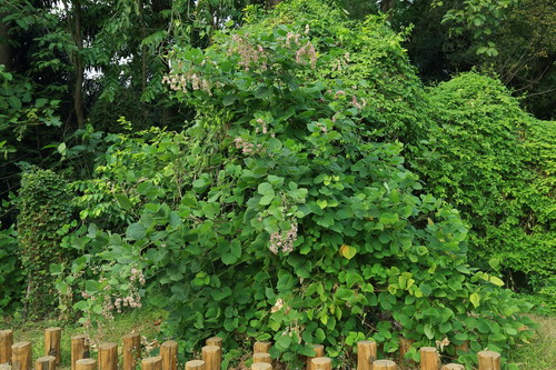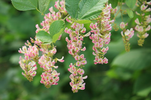 须弥葛(Pueraria wallichii DC.),豆科大型灌木状缠绕藤本植物。由于茎节落地生根,有独藤成林的特点。花期11月底至第二年1月,总状花序于枝条未端每节上抽生,可连抽七八穗之多,加之枝条柔软,花随风舞,引起阵阵花浪。小花花冠清秀,白里透红,有如含羞之少女。