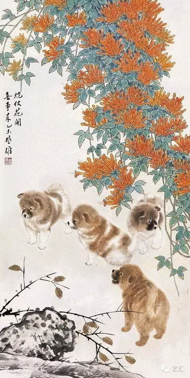 炮仗花为常绿木质大藤本,花多且密,满棚满架的花如瀑布一般天翻地覆的倾泻而下,置身藤下,你一定会沉醉于这片美好。从始花到盛花,活脱脱一幅“闹春图”在你眼前徐徐展开。炮仗花从1月开始绽放,一直持续到5月才慢慢结束,其间适逢我国传统新春佳节,古人有“爆竹一声除旧岁”诗句,红红火火、热热闹闹的炮仗花应时应景。炮仗花本身就具有一种别样的形式美感,也是艺术家眼里难得的创作素材,可谓如诗如画更入心,方楚雄、陈子奋、刘兴建等名家都描绘过炮仗花。