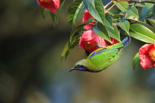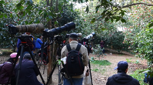 近段时间的广州仿如跌入冰窖,那种彻骨的冷是呆在暖气房里的北方孩子无法想象的。在这样的温度下,华南植物园里的很多温带树种均已落叶,只剩光秃秃的树干。而在山茶园里却是另外一幅景象,各种山茶花不畏严寒,竞相绽放,笑傲风霜,给这寒冬带来缤纷色彩。近日,其中有一种茶花成为明星,她满树开满喇叭状花朵,鲜红夺目,似热情奔放的少女,引来四方游客驻足观赏,啧啧称赞,鸟儿们也频频光顾其枝头,因此吸引了大批观鸟爱好者前来“打鸟”,这被围观的就是广宁红花油茶。