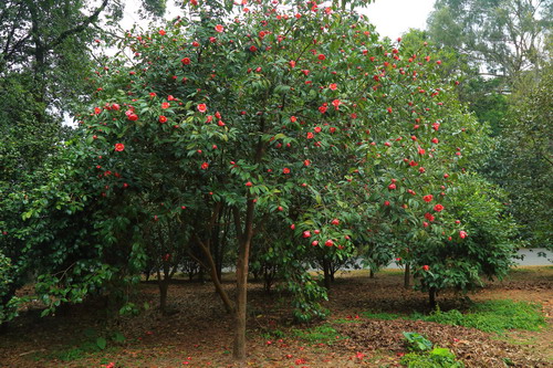 广宁红花油茶以高大、青秀舒展的树形,满树火红的花朵,饱满的果实,c成为早春观花、入秋赏果的园林优良乡土树种,具有极高的观赏价值,也是优良的食用油料植物。