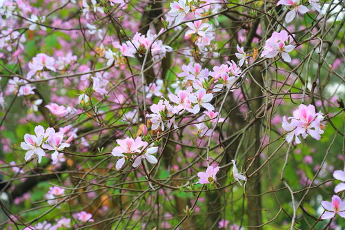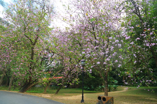 洋紫荆、白花洋紫荆观赏点(正在开花):樟树路彩虹桥、望瀑桥、科学家之家、木本花卉区