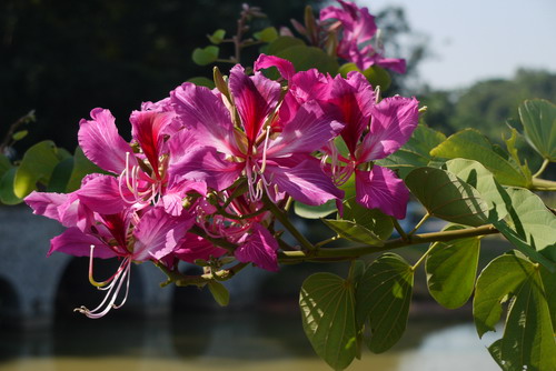 香港区花——紫荆花为红花羊蹄甲,花紫红色,全年可见花,以冬春为盛,不结果