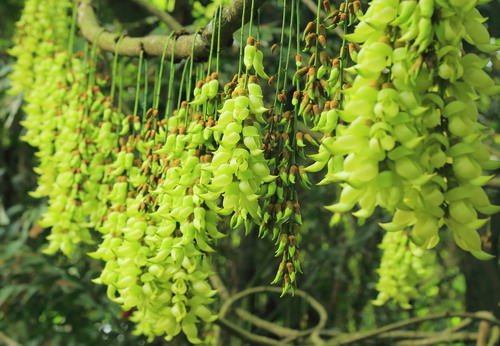华南植物园阴生植物区内最大的一株白色禾雀花已经生长了几十年,藤蔓不断攀爬延伸,花越开越多,绵延方圆上千平方米范围,每年开花时,甚是壮观。