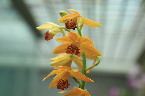 鹤顶兰属(Phaius Lour.)于1790年创立,其拉丁名Phaius的意思是深颜色的花朵,但其实鹤顶兰属的花朵也不乏鲜艳的颜色。鹤顶兰属约有50种,我国有8种,全部可供观赏。鹤顶兰的栽培历史已有200多年,1778年欧洲人从中国引入第一株鹤顶兰后,在西方就开始了对鹤顶兰连续不断地研究和培育。目前市场上的鹤顶兰栽培品种已经十分丰富,加上它花期长,有香气,早已成为人们喜爱的盆栽花卉。除鹤顶兰外,我园还栽培有黄花鹤顶兰(Phaius flavus),叶具黄色斑点,花淡黄色,不完全开放,唇瓣具3-4条褐色条纹)、仙笔鹤顶兰、紫花鹤顶兰等。