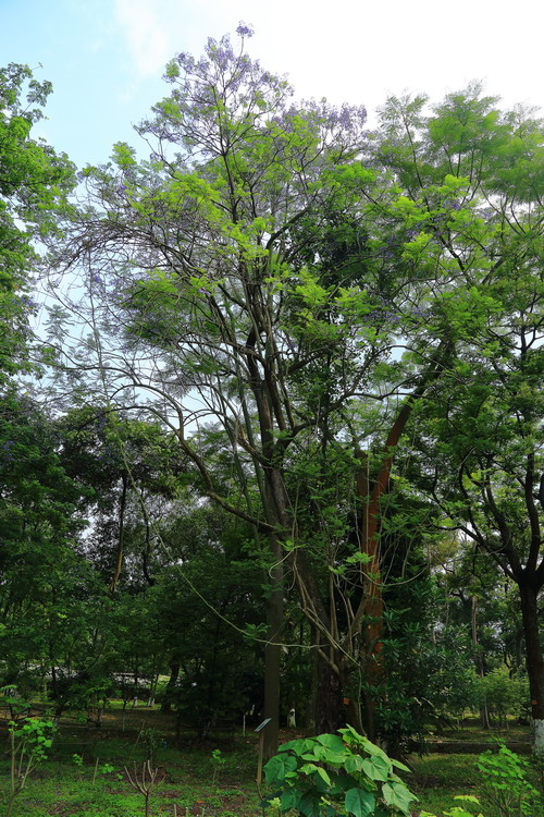 蓝花楹是优美的园林观叶、观花树种,木质较软,是制作木雕工艺品的好材料。而且已被证实具有一定的药用价值,是我园引进的经济效益、生态功能、观赏价值俱高的树种之一。