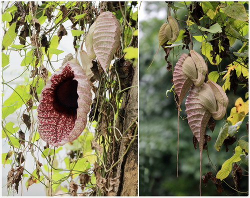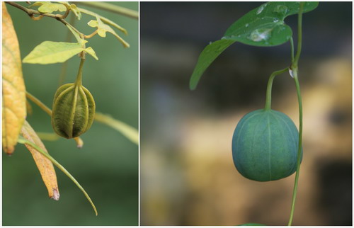 左:瓜叶马兜铃的果;右:美丽马兜铃的果