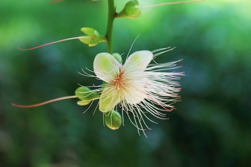 梭果玉蕊喜于夜晚开花,且单朵花寿命仅短短一晚;晚上七八点开始吐蕊绽丝,芬芳袭人,却拒绝阳光的温暖,于第二天清晨七八点坠落——整个琼雕玉砌的绒球轰然落地、委身泥土时依然是完整而艳美的一朵,仿如开在地上的瑶花。