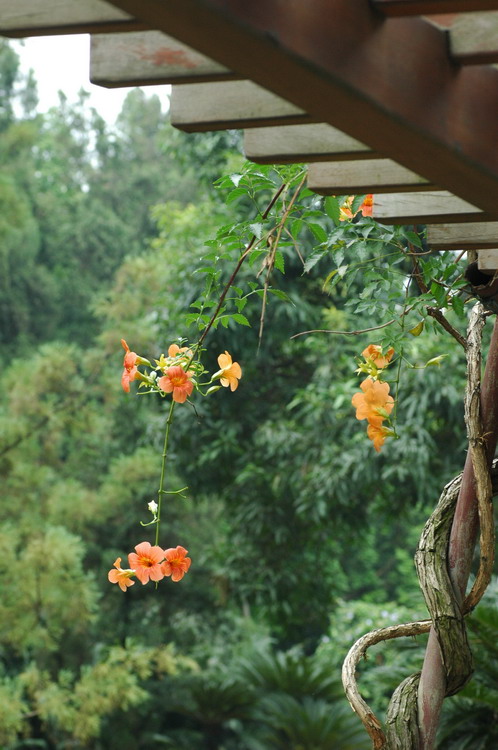 凌霄观赏地点:藤本园、苏铁园亭子上