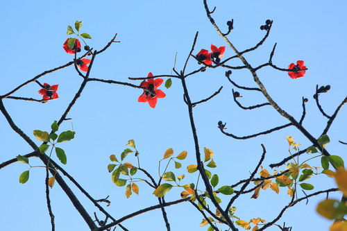2019年春木棉花开时,叶还没落完