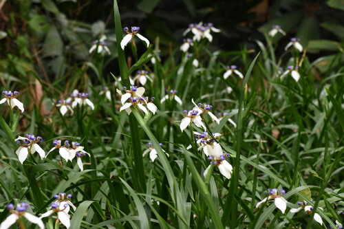 一路观察,一路拍,从西门的路边一直拍到山茶园、杜鹃园,林下一片片的玉蝶笑颜相迎,续而又从大门口一路拍到了生物园,此时的生物园更是巴西鸢尾的花海,林下的、路边的、草地上的全连成了一片片,美的连心情都靓丽起来了,也不管这是晴天还是阴天。美丽的巴西鸢尾花儿,恰似蝴蝶翩翩舞!看花蕾,明天还有一小场花的盛宴,你来吗?