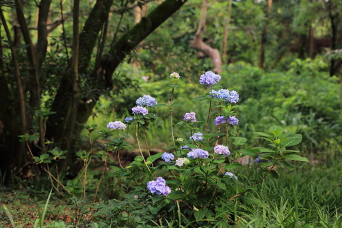 我一直认为赏花心情受环境影响很大,就说这个绣球花吧,如果你看阳台上的花盆里种的和你在庭院里看到花,两者的感觉是完全不一样的。在华南植物园药园里的林子深处看到这盛开绣球,有没有绿野仙踪的感觉?再加上花旁边的亭子,脑海里是否闪过亭子里应该有个仙女?其实此时此刻自己就是花丛中的仙女了!