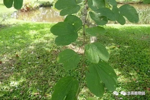 说她们之前,先简单介绍一下她们所在的羊蹄甲属。羊蹄甲属属名用来纪念瑞士-法国植物学家Bauhin兄弟。英文通称包括orchid tree、purple orchid tree、mountain ebony和poor man's orchid。而中文名的由来是因为这个属的叶片酷似羊蹄走过的脚印,因此名曰“羊蹄甲”。要是通俗地说,她们的叶片像各种款式的裤衩,我是没意见的。虽说羊蹄甲属物种的叶片是典型的羊蹄状,可是不同姐妹,其叶裂的程度和裂片先端的形状也有区别,叶片是它们的分辨特征之一。看了叶子形状,再来看花色,羊蹄甲属中按花的颜色命名的就有红花羊蹄甲、白花洋紫荆、橙花羊蹄甲、黄花羊蹄甲等等。