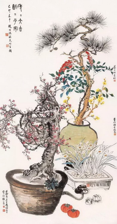 南天竹是我国原产的传统植物,福建、浙江、陕西、河南、安徽等我国大部分地区都有分布,原广泛生长于山地林下沟旁的荒野中,后来渐渐被世人所认知,露地栽培或盆栽观赏,用作优美的观叶、观果花卉。南天竹在园林及插花圈子里成名已久,早在明清时期,南天竹就被列为古典庭园的造园植物,随着园艺水平的进步,现已涌现出众多彩叶南天竹品种。中国人跨年终须有火红的点缀,或以花木盆景,或以丹青墨妙,统称为岁朝清供。在“岁朝写案头花”即岁朝清供图里,南天竹作为上好的冬季花材常与梅花、松木等插在大胆瓶里,集色彩美、形态美、意境美于一体的传统插花,在传递植物喜悦的同时,蕴含着中国人生活中最雅致精妙的细节。中国现代著名作家、盆景艺术家周瘦鹃曾将南天竹与蜡梅并称“岁寒二友”,在其小令《好事近》中道“天竹殷殷红透,好与寒梅作伴,喜两相竞旁。”这种巧妙的组合包含着朴素美好的祈愿,赋予新年生机与喜庆。