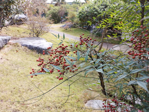 南天竹虽然有毒,但并不妨碍人们对它的欣赏和喜爱。自古以来,关于南天竹的前世今生有许多饶有趣味的故事,其中认为南天竹是绛珠仙草的原型。绛珠也就是红色的珠子,《红楼梦》里绛珠仙草是林黛玉的前身,“如霞如云多绰约,无风无雨自婆娑,亭亭一院朱砂红,皆是离人眼中血。”神话中的植物在现实中很难对应,一日在华南植物园高山植物室次入口广场外,望着天然岩石间曼妙的南天竹灌木丛发呆,想起“三生石畔,有绛珠草一株”,刹那之间一棵南天竹满足了我对于绛珠仙草的想象。