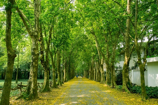 人面子是一道四时不同的风景。它树干灰褐色,明显龟裂,辨识度极高;叶为奇数羽状复叶,小叶5-7对,它不断地长出新叶,旧叶零星的飘落,一眼望过去,新叶老叶分明。南方树木的落叶也是“独树一帜”,“无边落木萧萧下”的景致在南方不属于秋天而发生在春天,人面子大规模换叶期则更晚一点。初夏的四五月份,伴随着风吹雨打,一夜之间,黄叶全掉光,铺满一地,柔嫩的新叶蹿出来,从此开始新的轮回。