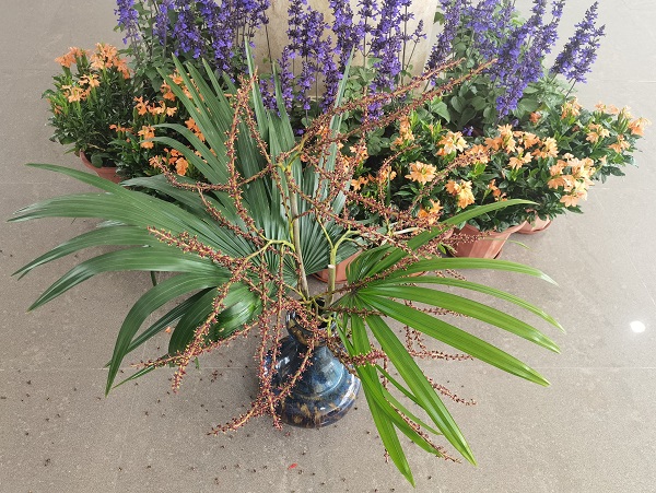 琼棕下垂的果序用作花艺创作