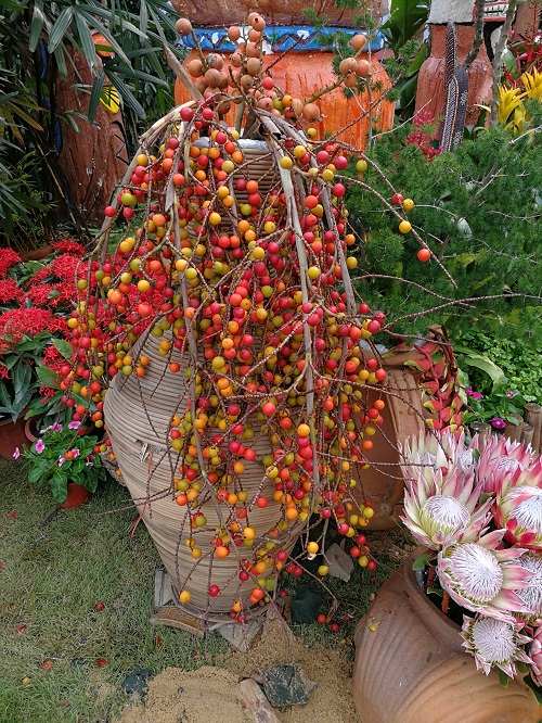 琼棕果序色彩缤纷,高瓶插花