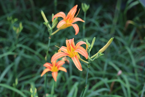 萱草自古就是人们喜欢的观赏植物,高低落差的株型,袅娜多姿,生命力旺盛,管理粗放。多栽植于花坛路边庭院间观赏,开花时一片橘红色,十分美丽。唐代李咸用有咏《萱草》诗“积雨莎庭小,微风藓砌幽。莫书开太晚,犹胜菊花秋”。