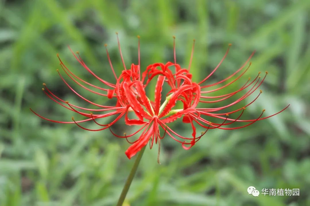 石蒜虽美,但也请游客朋友们莫要随意折枝,皮肤接触其花杆流出的汁液会让一些过敏体质的人产生过敏反应,所以在观赏的时候需要尽量避免触碰和误食。园内石蒜属植物有石蒜和忽地笑两种,前者在8-9月盛开,若是错过,可在9-10月观赏花期较迟的忽地笑。