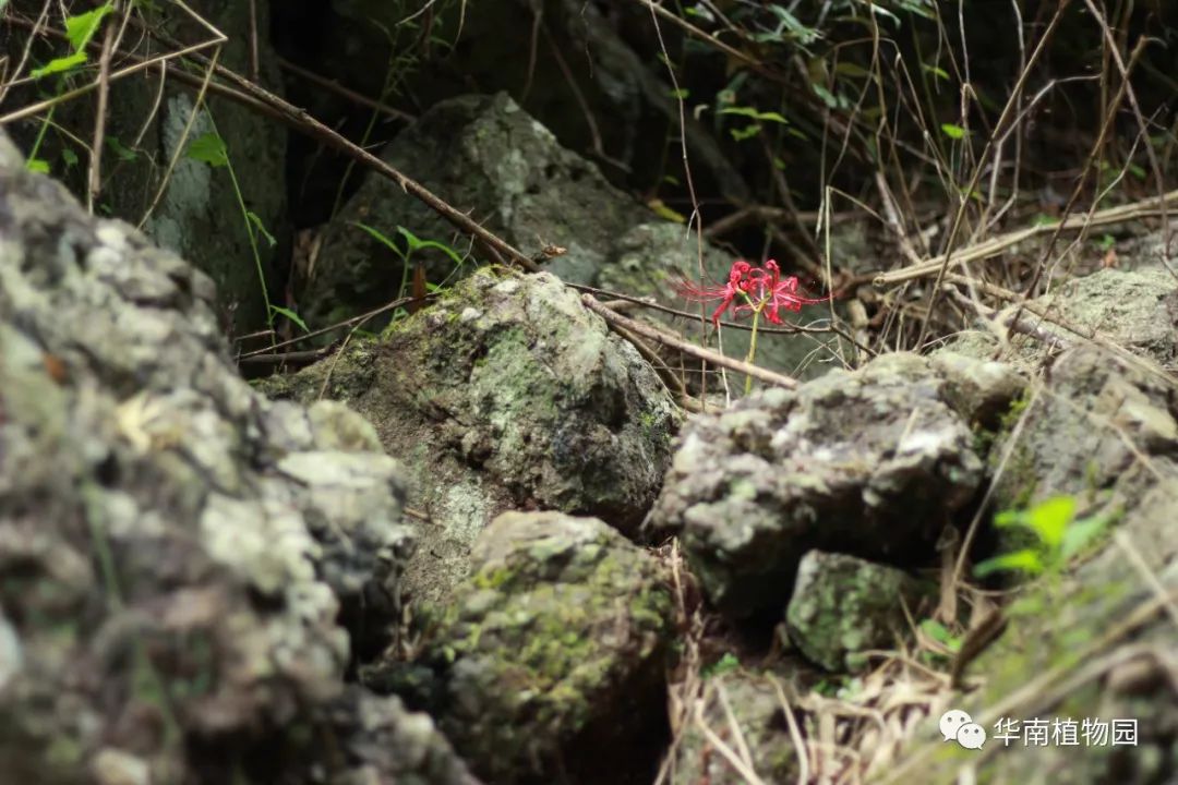 图5 原生境里石缝中生长的石蒜(徐一大 摄)