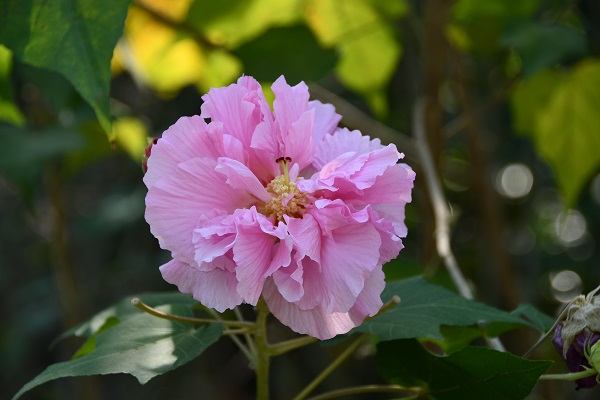 木芙蓉,单朵花开一天,早上白色,中午桃红,傍晚深红,一日三变
