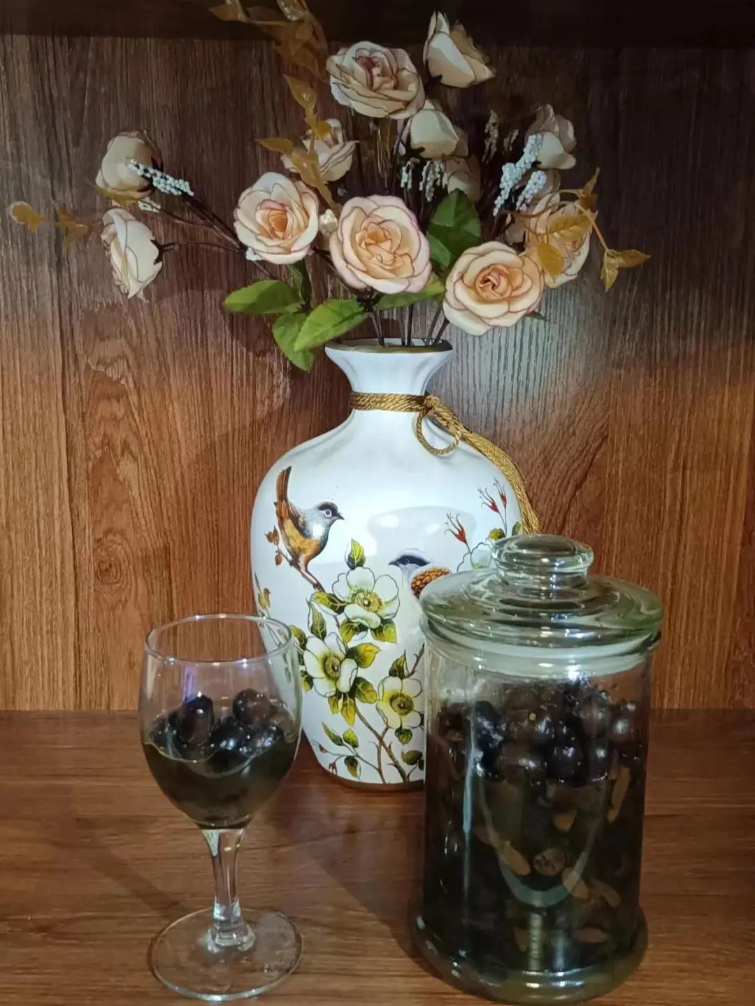桃金娘的果实虽小,但胜在结果量大和挂果期长,从前在山间自由生长的桃金娘,馈赠的果实根本吃不完,吃不完呐!何况每个人一次也不敢多太吃,否则第二天就难受了(懂的人自然懂)。然而不得不佩服劳动人民的聪明智慧,人们发现除了将成熟果当水果生食外,果实也可以用来泡酒。桃金娘所含色素对光和热稳定性很好,为很有前途的天然色素。