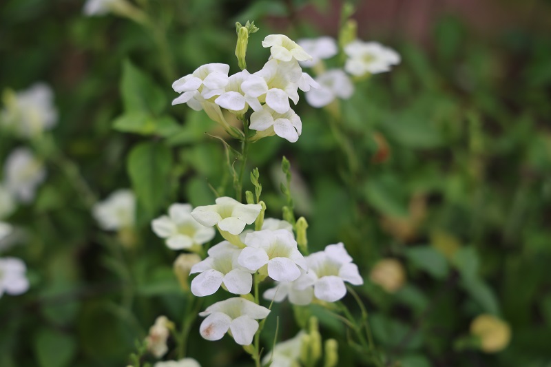 小花十万错原产非洲,归化于我国广东、福建、台湾等地,喜欢温暖湿润的环境,森林边缘、路边常见。它花冠洁白,唇瓣上有紫色的花纹,4枚雄蕊,2长2短,长的雄蕊伸出花冠,短的雄蕊隐藏在花内,花儿非常的精致。名为小花十万错,其实花也不算小,但相对宽叶十万错的花而言就小了。如果说宽叶十万错的花大而鲜艳夺目的话,那么小花十万错的花就是小而清新可人。