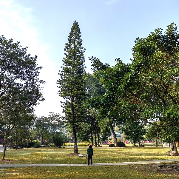 我是一棵秋天的南洋杉,也是2010年广州亚运会纪念树。我四季苍翠,默默不语,行人都不稀多看一眼。突然有一天, 她看见了我面前的石头铭牌,记录着我们曾经奋力拼搏的时光,然后会心一笑。