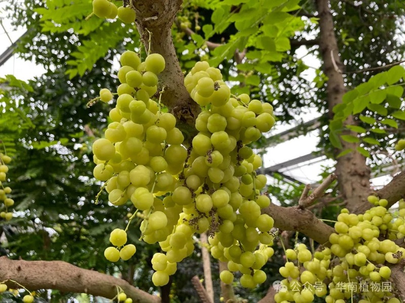近期在华南植物园温室群景区-奇异植物室里和能源路边有一种硕果累累的植物引来众多游客的驻足观赏和拍照, 这些果子远点看像一串串淡黄绿色的葡萄缀满在枝上,走近看又像一个个晶莹剔透的小南瓜,十分可爱,它们就是从泰国引进的西印度醋栗(Phyllanthus acidus (L.) Skeels)。