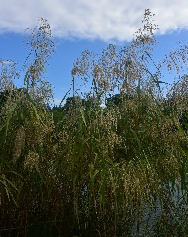 芦苇常生长于底泥肥沃深厚的沼泽、河岸和池塘,冬季需要收割控制生长,在广州市区内较少大量种植。在华南植物园水生园,用于巩固河岸的芦苇慢慢扩散生长,逐渐形成芦苇景观。