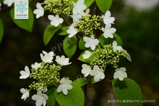 首先来看看蝶花荚蒾(Viburnum hanceanum Maxim.),该种植物和蝴蝶戏珠花(Viburnum plicatum var. tomentosum)同属于忍冬科(现为荚蒾科)荚蒾属,远看很相似,只是蝶花荚蒾的不孕花为2-5朵,叶子有侧脉5-7对;而蝴蝶戏珠花的不孕花为4-6朵,叶子侧脉为10-17对。两种植物开花的时候,都似一只只洁白的蝴蝶停在叶子上休憩,让人忍不住驻足观赏,估计真正的蝴蝶们也会以为是同类,从而相约嬉戏。