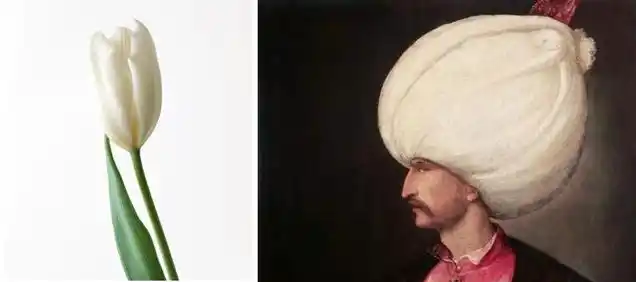郁金香虽是荷兰的国花,但荷兰并不是郁金香的发源地。远在帕米尔高原,一直延伸到天山脚下,生长着一类野生的百合科植物,这些才是郁金香的“始祖”。在我国新疆地区,也有野生郁金香属植物分布,且有15种之多,因此,中国是野生郁金香的起源地之一(图1)。欧洲大部分地区的“野生”郁金香不是原生的,而是大约在16世纪时从当时的奥斯曼帝国传入并归化的。在土耳其语中,郁金香写作lale,和安拉一词很相似。后来lale又变成“三日月”一词,变成奥斯曼帝国的象征物。上至皇家贵族,下至贩夫走卒,无不对郁金香推崇备至,心慕手追。奥斯曼帝国的贵族,喜欢在头巾上插一朵郁金香。当欧洲人问,这是什么花?土耳其人以为在问头巾,回答tulipa。欧洲人误把缠头巾一词,当做郁金香的名字,起英文名tulip(图2)。