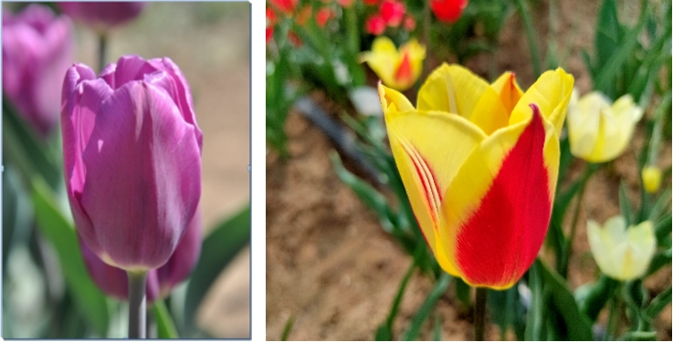 (上左)我国首个自主选育的郁金香品种‘紫玉’和其他国产郁金香