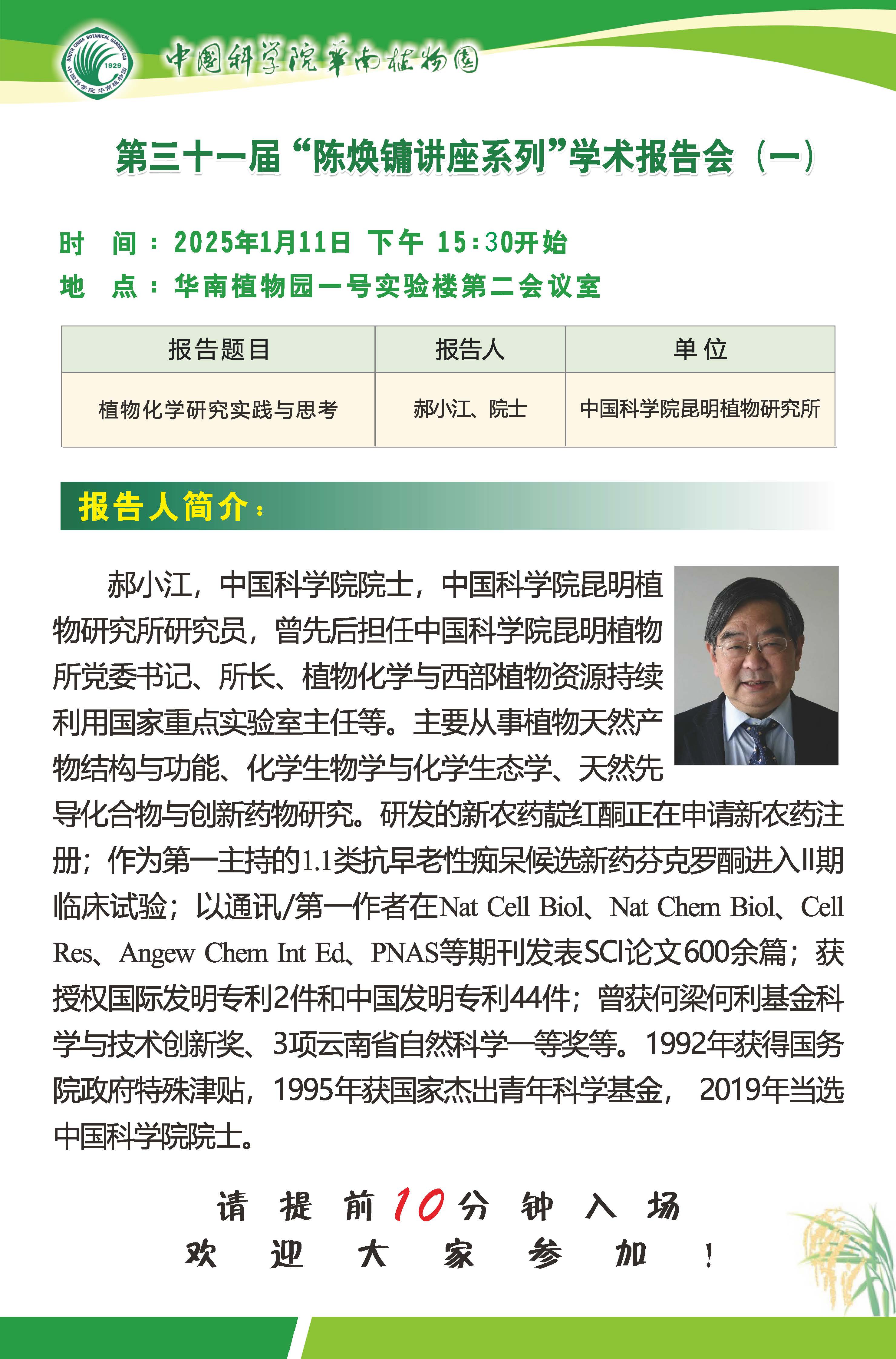 第三十一届 “陈焕镛讲座系列”学术报告会(一)