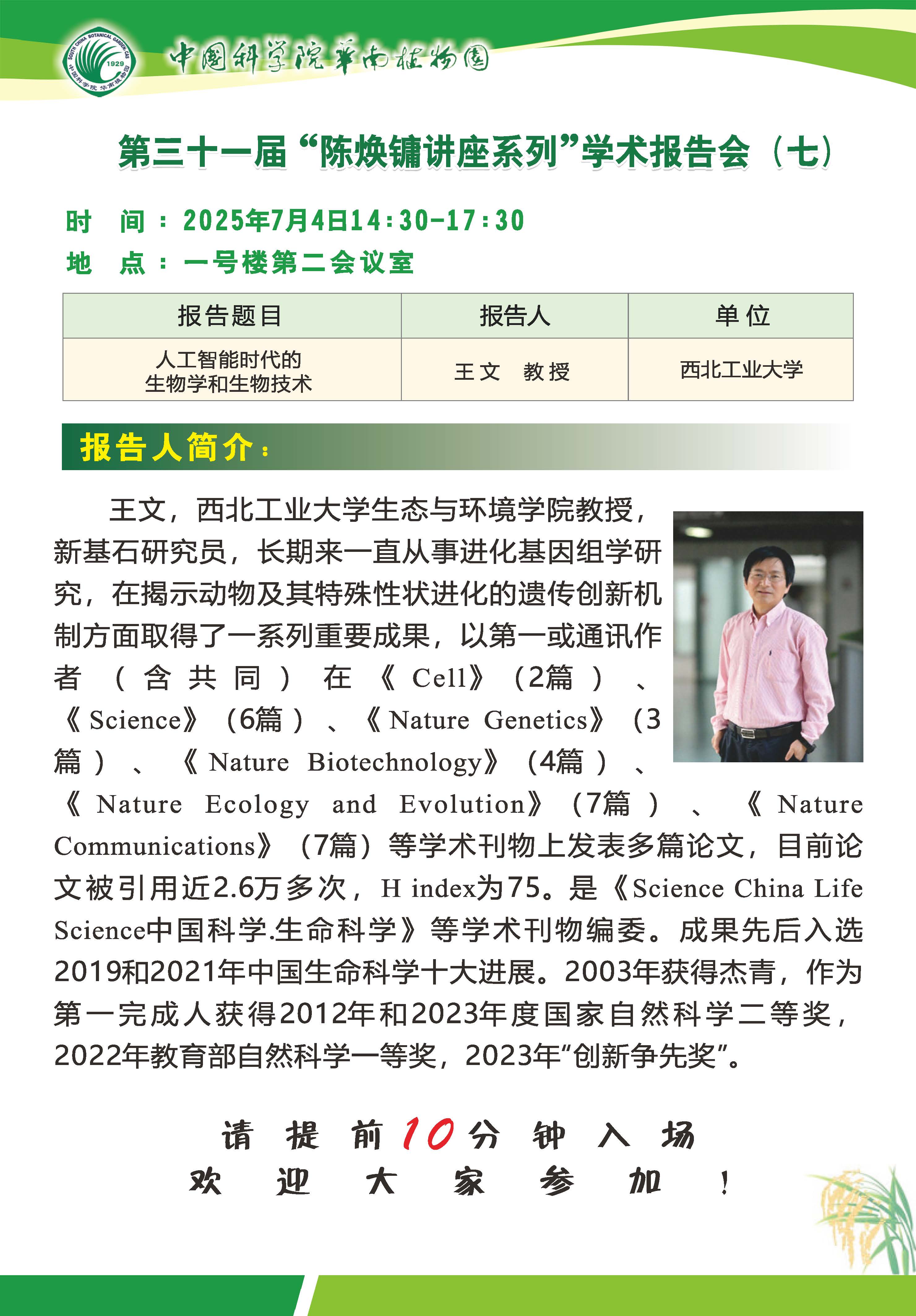 第三十一届 “陈焕镛讲座系列”学术报告会(八)