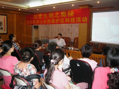 现场考察结束后,保护区管理局的欧阳学军博士为科考人员做了一堂生动的讲座,主要介绍了鼎湖山国家级自然保护区和中国自然保护区的基本情况和发展历程。通过讲座,老师们增进了对森林植被及其生物多样性的了解,加深了对中国自然保护区的发展和意义的认识,为他们今后的生物学教学积累了更多教学素材和科考实践。