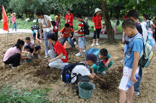 小朋友们首先在“开心农场”进行种植活动,挖坑、松土、浇水、播种、覆土,亲手种下了向日葵、黄瓜等植物。随后,小朋友们参观了温室群景区。在导游的详细讲解下,小朋友们了解了热带雨林、沙漠植物、高山植物等知识,体会到人和植物的关系,并树立起保护植物、保护环境、保护地球的理念。《植物私生活》科普小电影让小朋友们学到了植物种子和花的知识,对植物有了更深的了解。在互动实验室,同学们亲手制作了植物标本和植物押花,掌握了进行植物学研究的初步技能,锻炼了动手能力。显微镜下奇妙的茎、叶、花、子房的细胞结构吸引了孩子们的好奇目光,解剖镜下蝴蝶和苍蝇的复眼结构更是让小朋友们啧啧称奇。最后,孩子们在“儿童欢乐世界”畅玩,享受一天劳作后的休闲游乐时光。